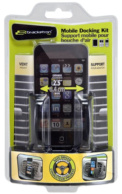 Easily connects to your vehicle?s vent louvers for a quick and easy mounting solution. The iPod Docking kit is the ideal solution to easily mount your iPod or mobile device in your car. It connects easily to the louvers of your vehicle's air vent to provide a stable, secure and accessible mounting solution. Includes 1 year warranty.